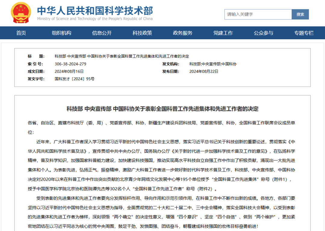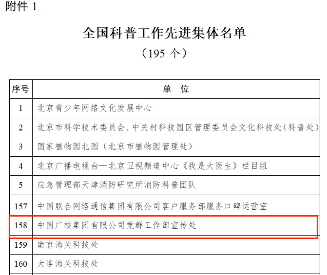 8月22日,科技部、中央宣传部、中国科协����� �������Ƴ����������� �������Ƴ������������ �������Ƴ������������ �������Ƴ������联合发布《关于表彰全国科����� �������Ƴ������������ �������Ƴ������������ �������Ƴ������������ �������Ƴ�������普工作先进集体和先进工作者的决定》(以下简称����� �������Ƴ������������ �������Ƴ������������ �������Ƴ����������� �������Ƴ������“决定”),对2020年以来在科普工作����� �������Ƴ������������ �������Ƴ����������� �������Ƴ������������ �������Ƴ�������中作出突出贡献的195个单位授予“全国科普工作先����� �������Ƴ������������ �������Ƴ������������ �������Ƴ������������ �������Ƴ�������进集体”称号。中国广核集团有����� �������Ƴ������������ �������Ƴ������������ �������Ƴ������������ �������Ƴ�������限公司党群工作部宣传处作为国务院国资����� �������Ƴ������������ �������Ƴ������������ �������Ƴ������������ �������Ƴ������委遴选并推荐的两家单位之一,荣获“全国科普����� �������Ƴ����������� �������Ƴ������������ �������Ƴ������������ �������Ƴ�������工作先进集体”称号。