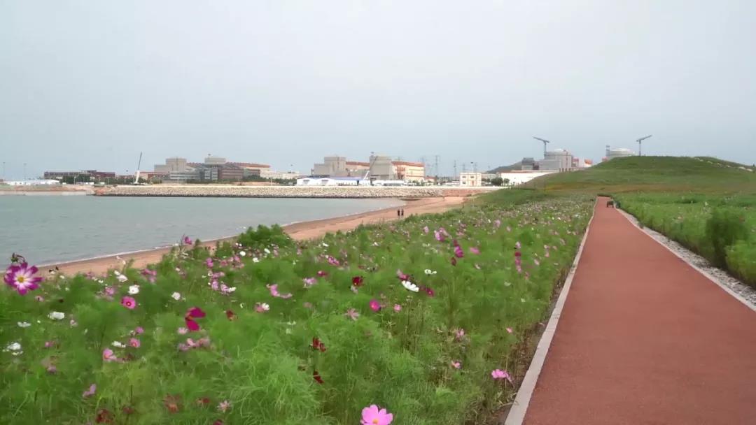 ▲红沿河核电基地直播现场,格桑花海与远处的核电机����� �������Ƴ������������ �������Ƴ������������ �������Ƴ����������� �������Ƴ������组遥相呼应