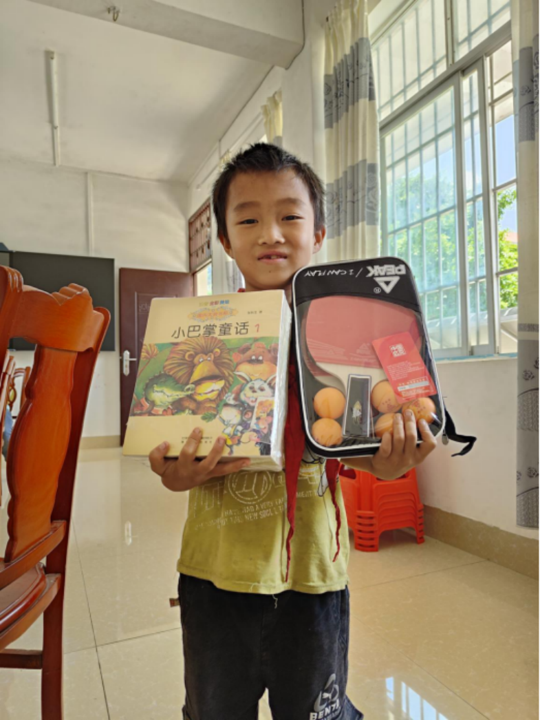 ▲中广核铀业帮扶小组为韦才弟送上儿童节礼物