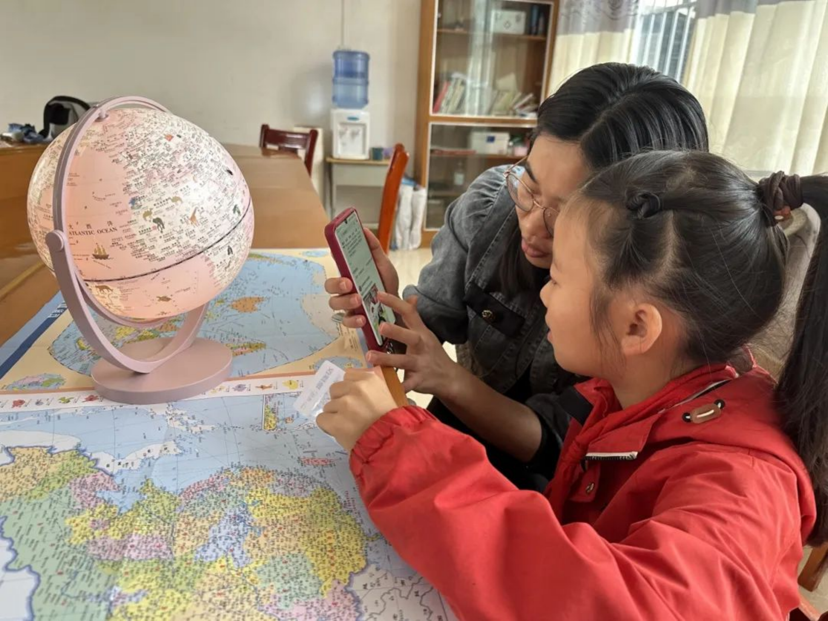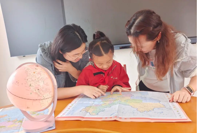 ▲志愿者为孩子讲解“小小地理课”