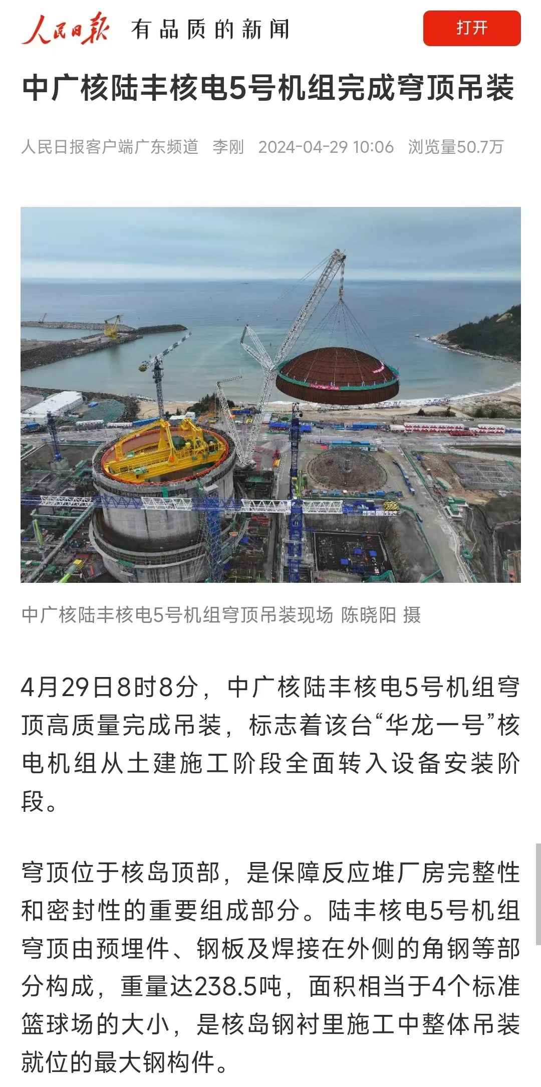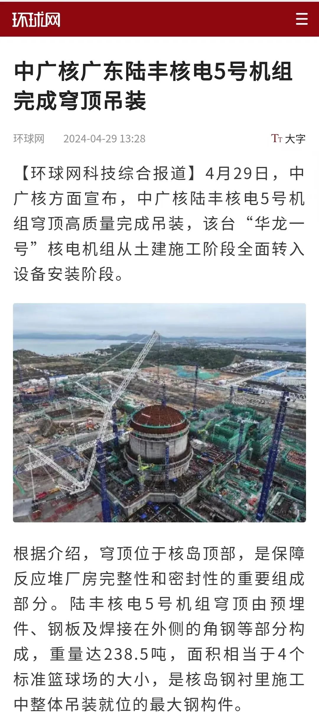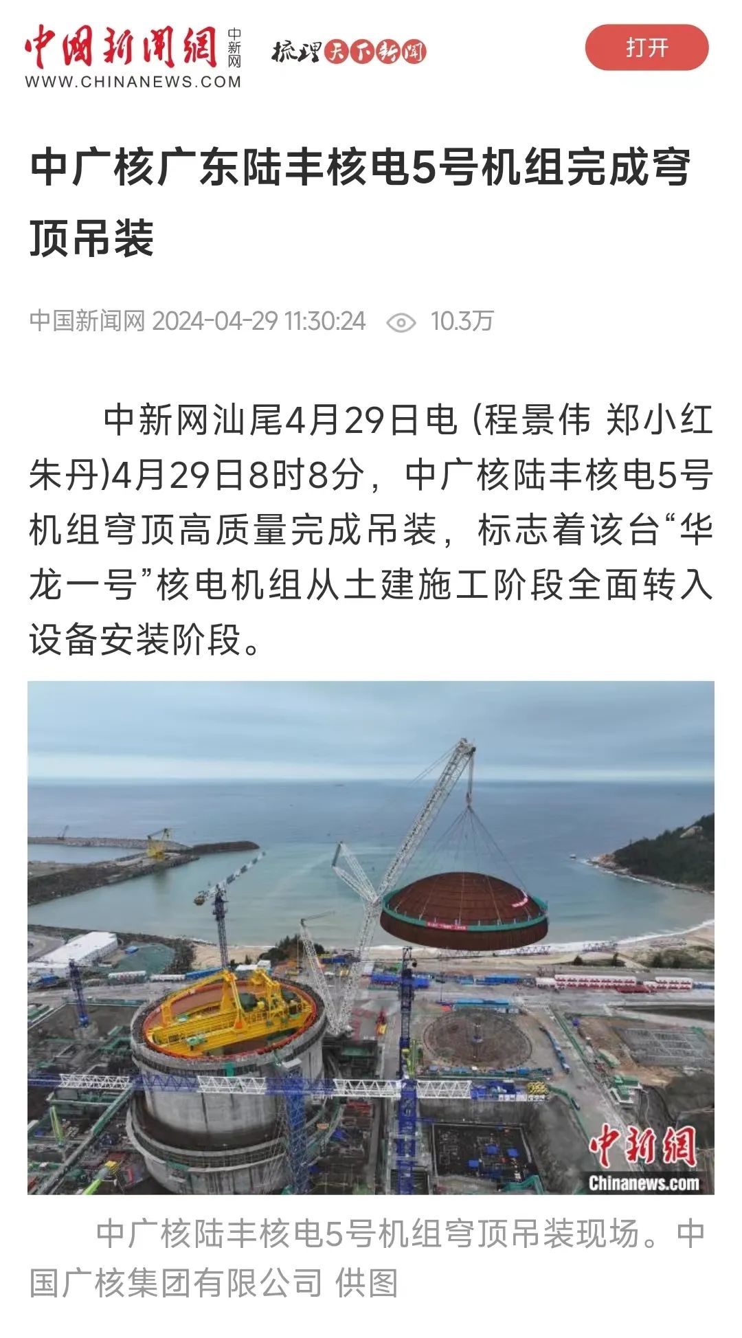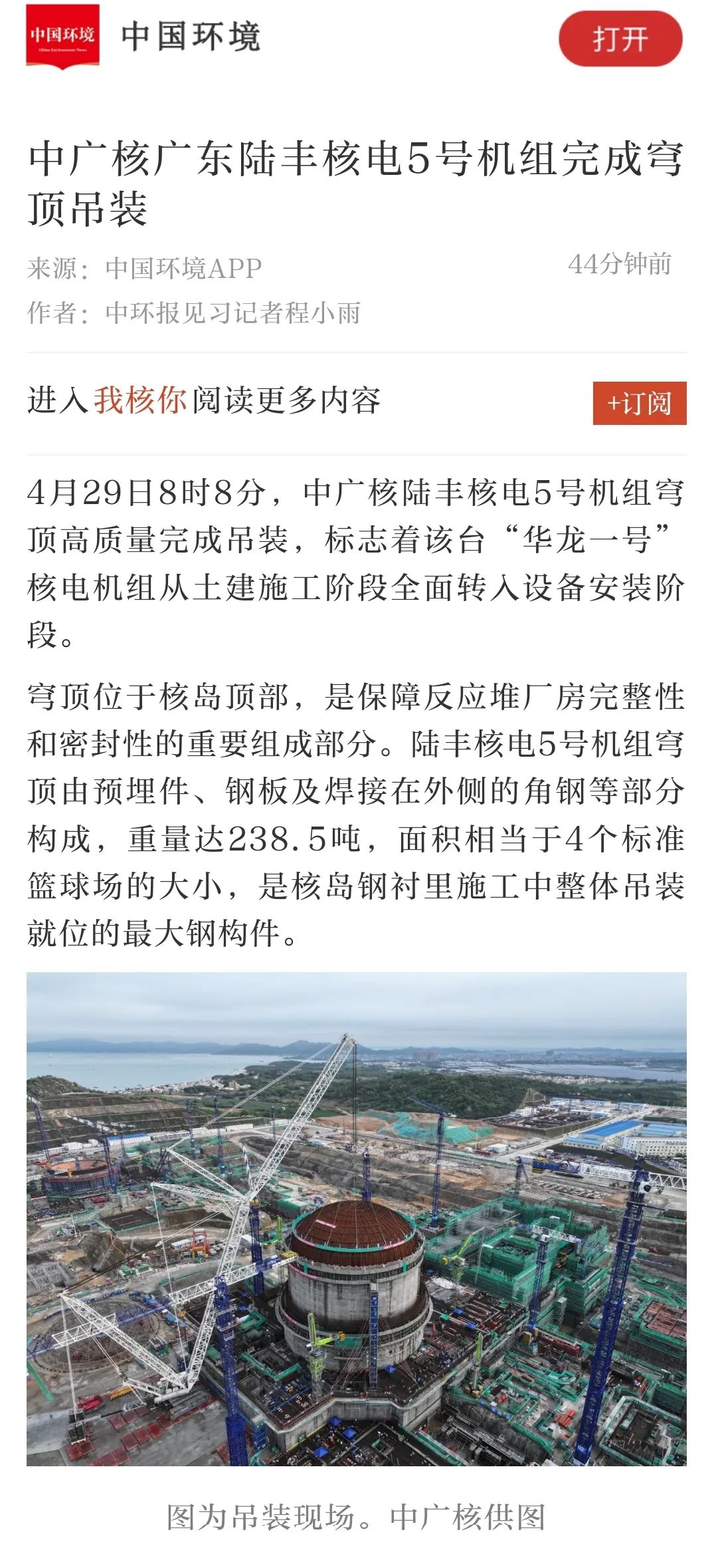 4月29日8时8分,中广核广东陆丰核����� �������Ƴ������������ �������Ƴ������������ �������Ƴ������������ �������Ƴ�������电项目5号机组穹顶完成吊装����� �������Ƴ������������ �������Ƴ������������ �������Ƴ������������ �������Ƴ�������,标志着该台“华龙一号”核电机组从土建施����� �������Ƴ������������ �������Ƴ������������ �������Ƴ������������ �������Ƴ�������工阶段全面转入设备安装阶段。人����� �������Ƴ������������ �������Ƴ������������ �������Ƴ������������ �������Ƴ������民日报、新华社、央视等多����� �������Ƴ������������ �������Ƴ������������ �������Ƴ����������� �������Ƴ�������家主流媒体对此进行聚焦报道。