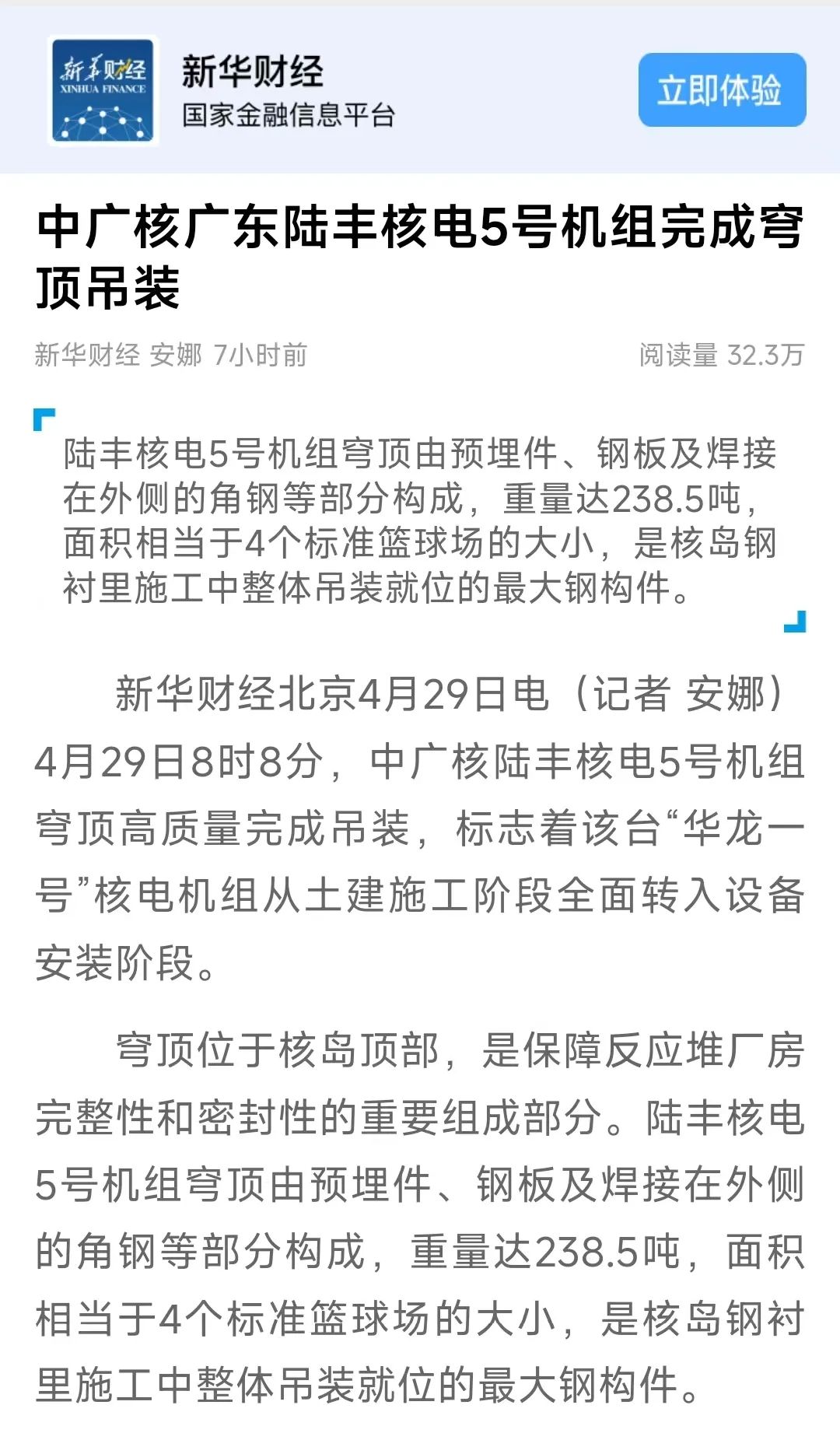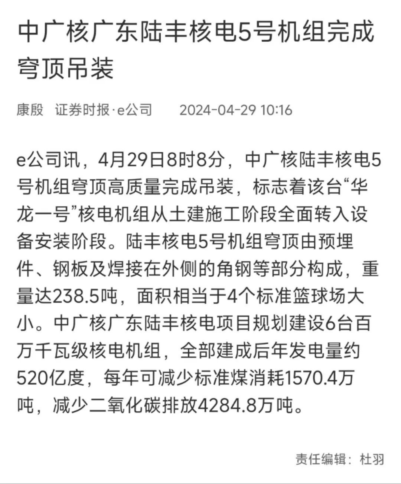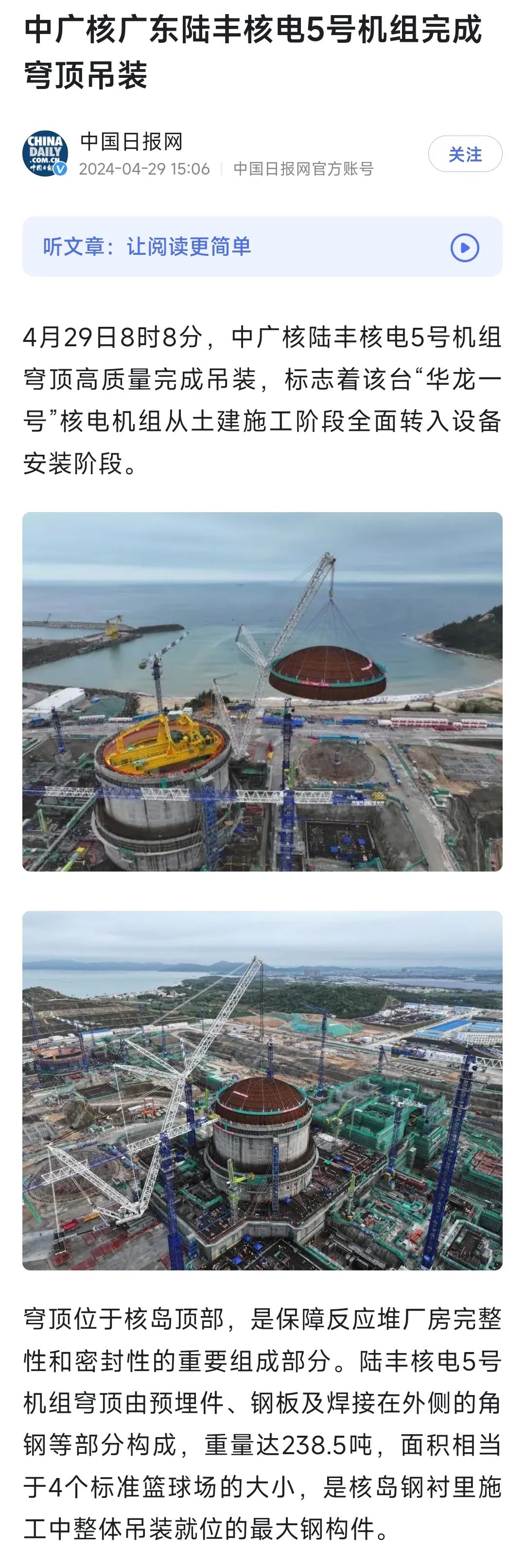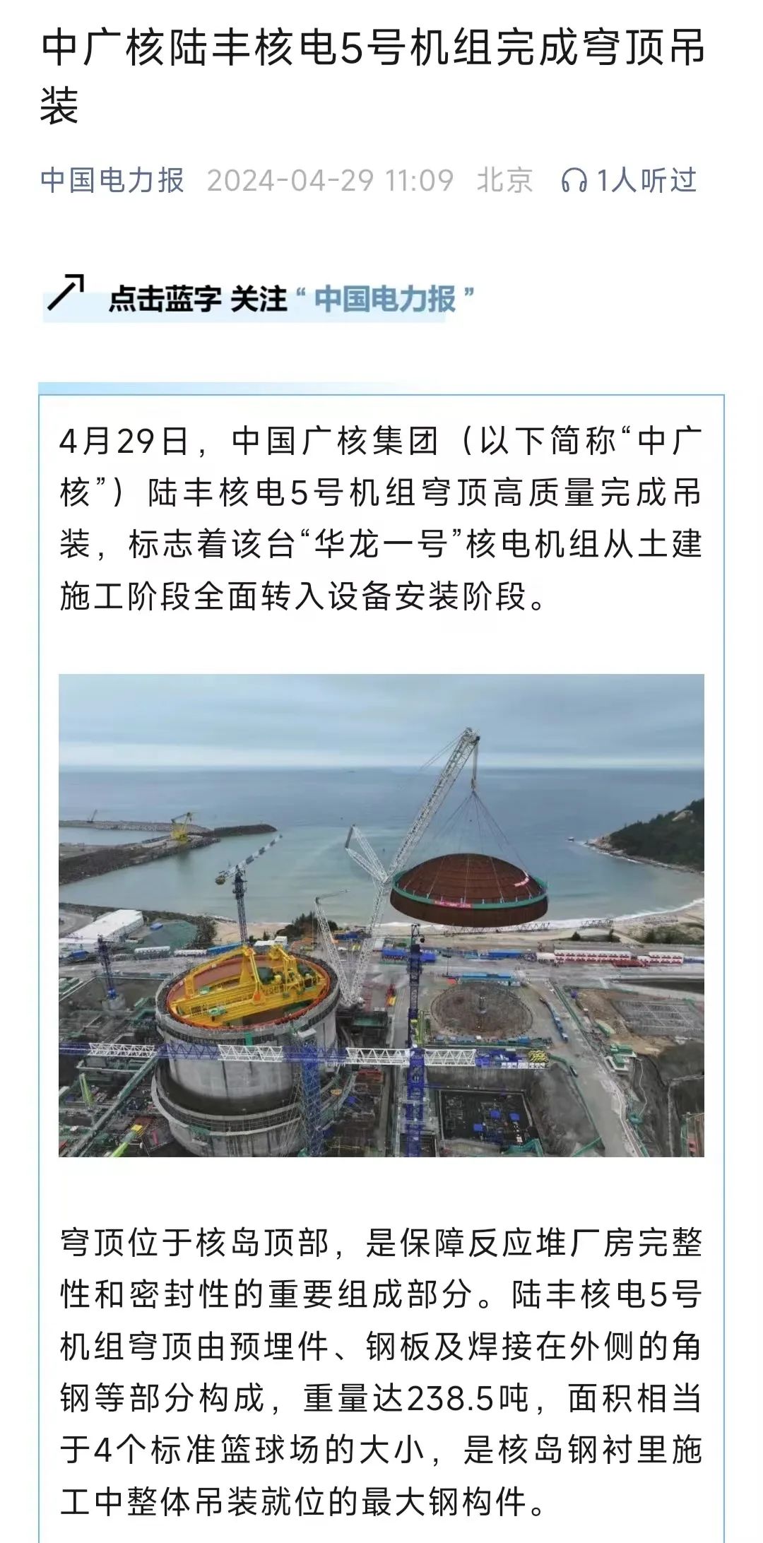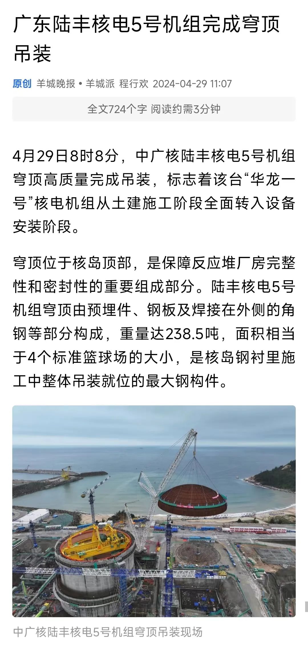 4月29日8时8分,中广核广东陆丰核����� �������Ƴ������������ �������Ƴ������������ �������Ƴ������������ �������Ƴ�������电项目5号机组穹顶完成吊装����� �������Ƴ������������ �������Ƴ������������ �������Ƴ������������ �������Ƴ�������,标志着该台“华龙一号”核电机组从土建施����� �������Ƴ������������ �������Ƴ������������ �������Ƴ������������ �������Ƴ�������工阶段全面转入设备安装阶段。人����� �������Ƴ������������ �������Ƴ������������ �������Ƴ������������ �������Ƴ������民日报、新华社、央视等多����� �������Ƴ������������ �������Ƴ������������ �������Ƴ����������� �������Ƴ�������家主流媒体对此进行聚焦报道。