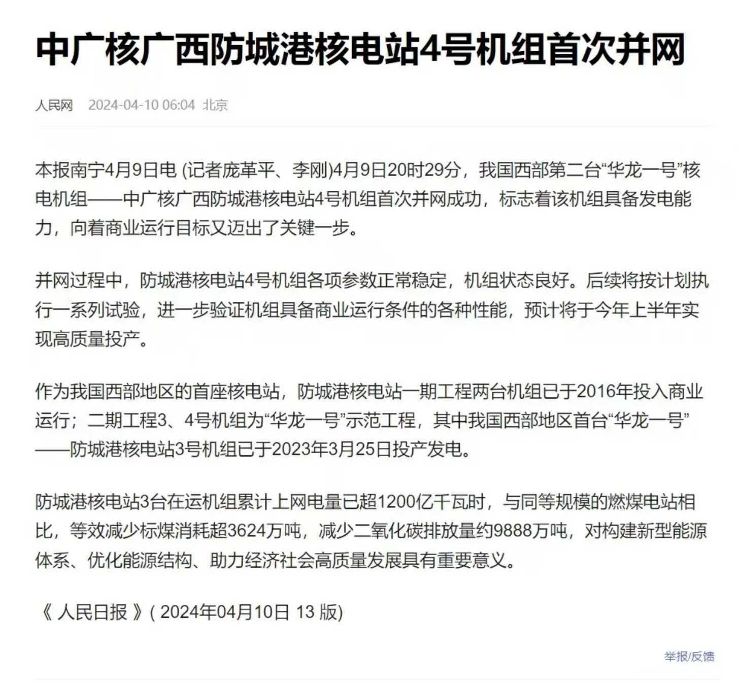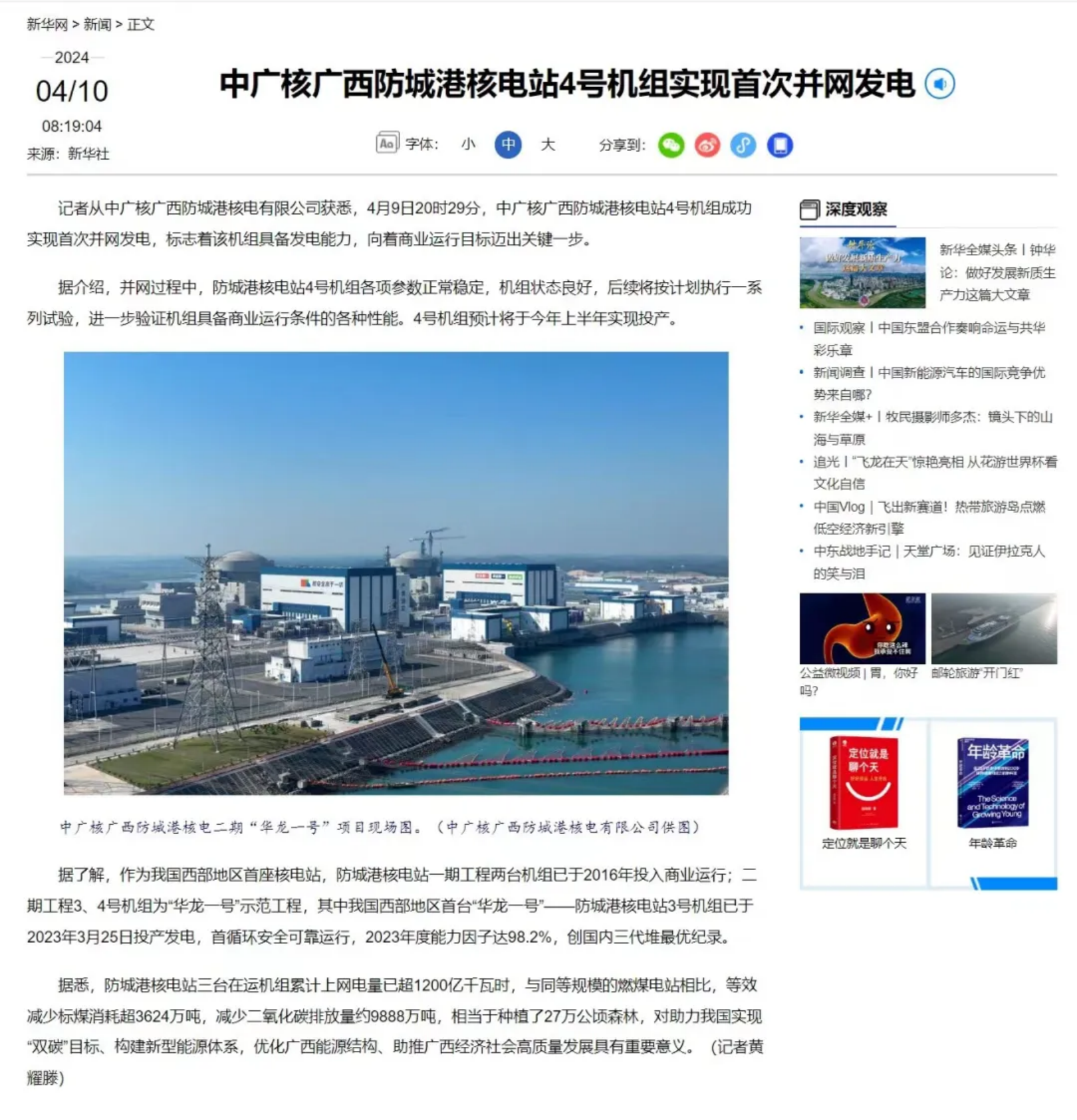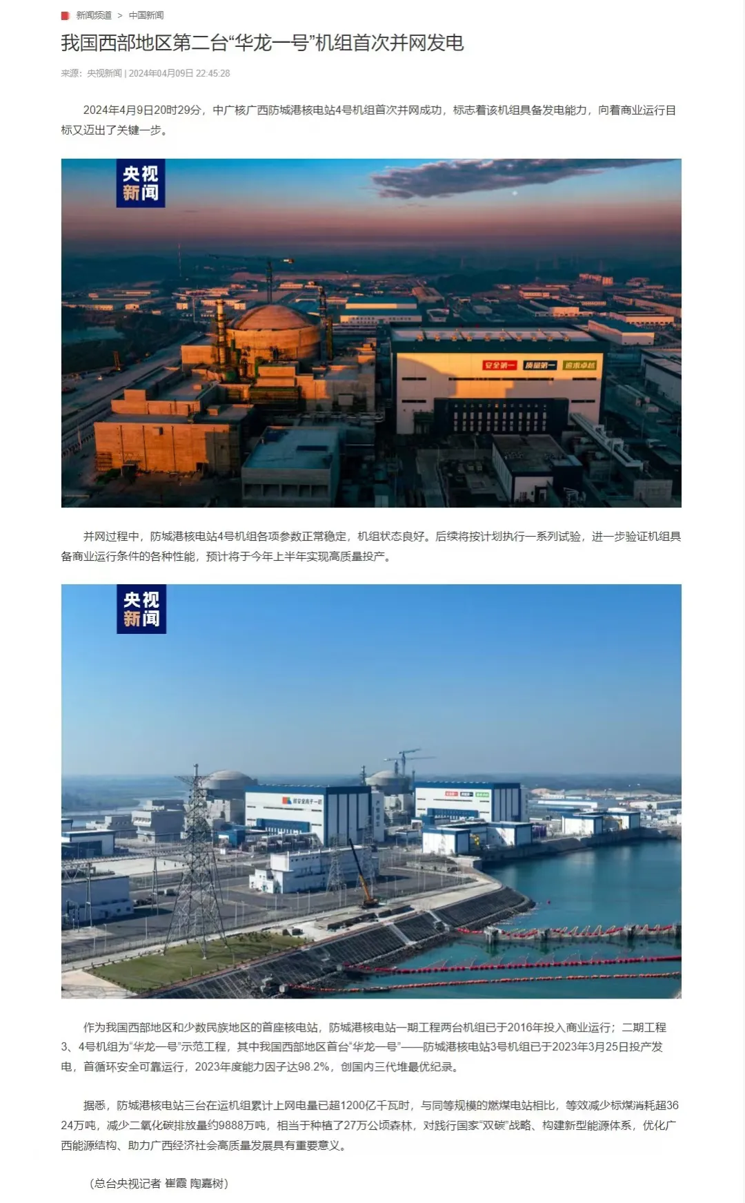 防城港核电站4号机组首次并网成功,受到了主流媒体����� �������Ƴ����������� �������Ƴ������������ �������Ƴ������������ �������Ƴ�������和社会公众的广泛关注,人����� �������Ƴ������������ �������Ƴ������������ �������Ƴ������������ �������Ƴ�������民日报、新华社、央视等近30家媒体聚焦报����� �������Ƴ������������ �������Ƴ������������ �������Ƴ������������ �������Ƴ�������道。