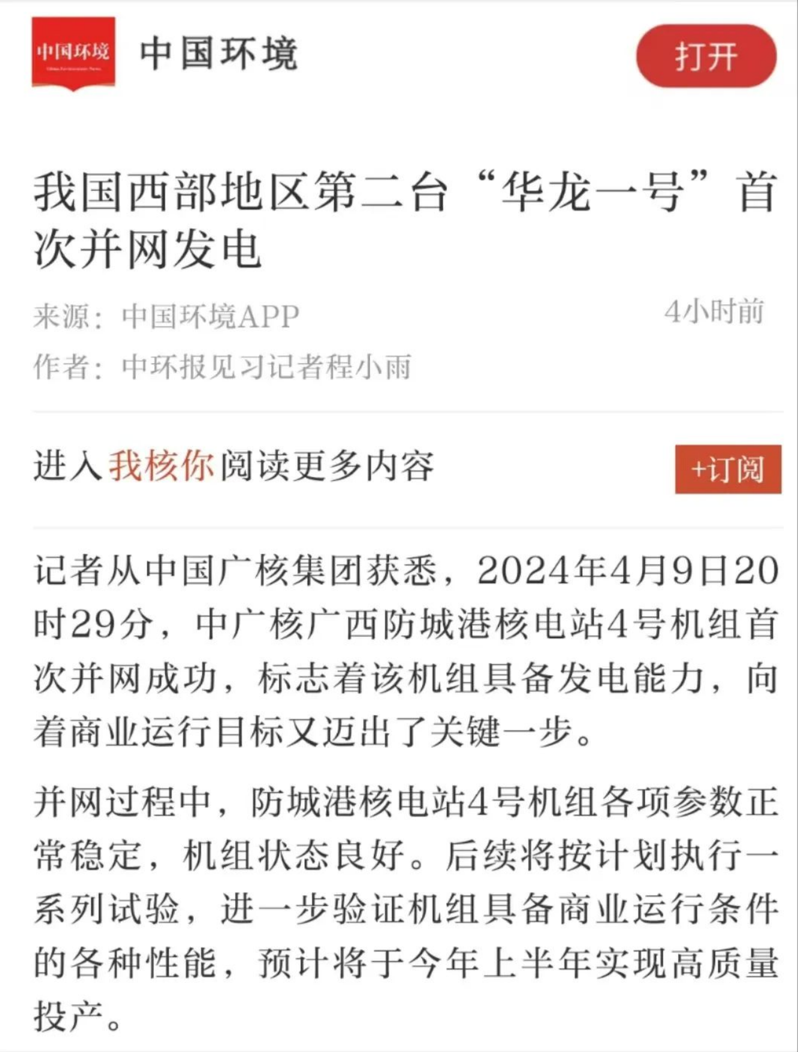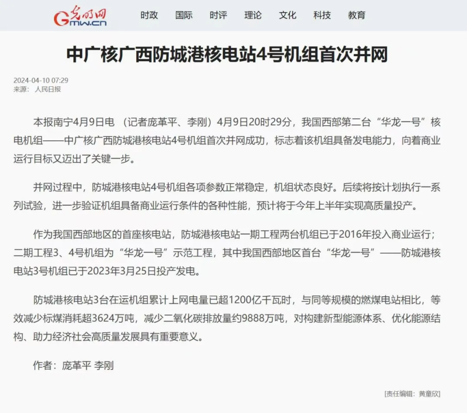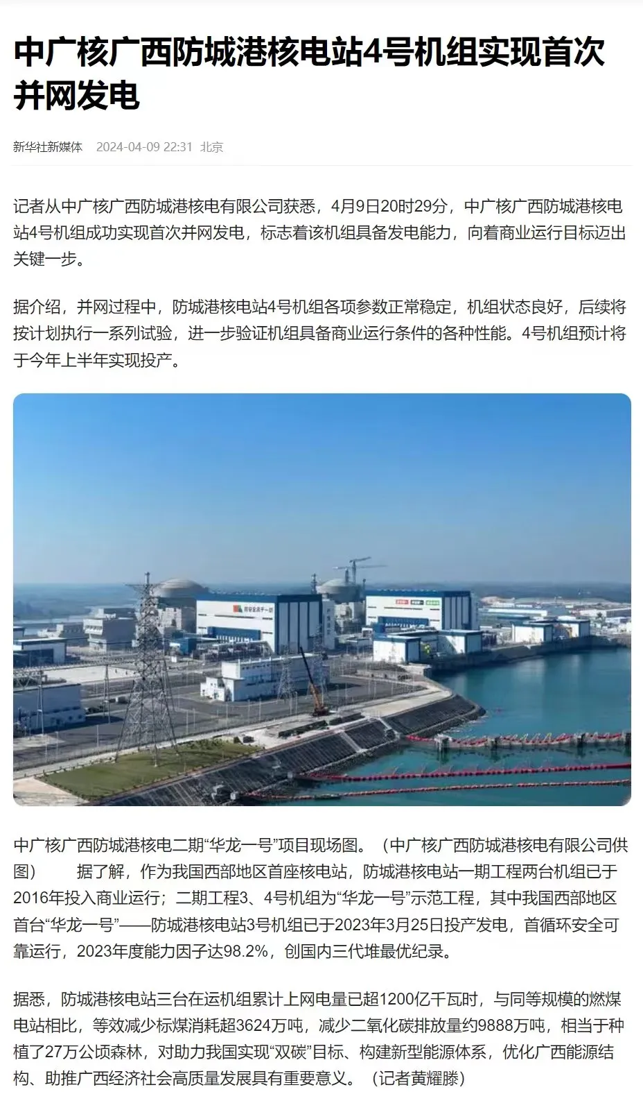 防城港核电站4号机组首次并网成功,受到了主流媒体����� �������Ƴ����������� �������Ƴ������������ �������Ƴ������������ �������Ƴ�������和社会公众的广泛关注,人����� �������Ƴ������������ �������Ƴ������������ �������Ƴ������������ �������Ƴ�������民日报、新华社、央视等近30家媒体聚焦报����� �������Ƴ������������ �������Ƴ������������ �������Ƴ������������ �������Ƴ�������道。