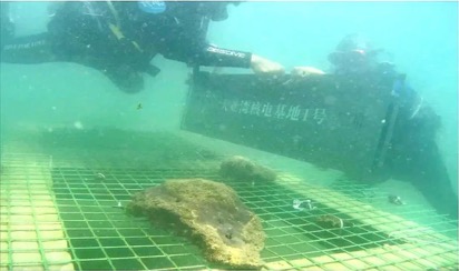 ▲“水哥”王昱珩潜入海底为“大亚湾核电基地珊瑚保育区”挂牌