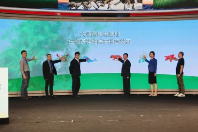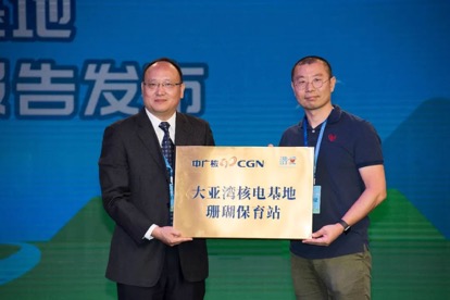 ▲嘉宾为“大亚湾核电基地珊瑚保育区”揭牌